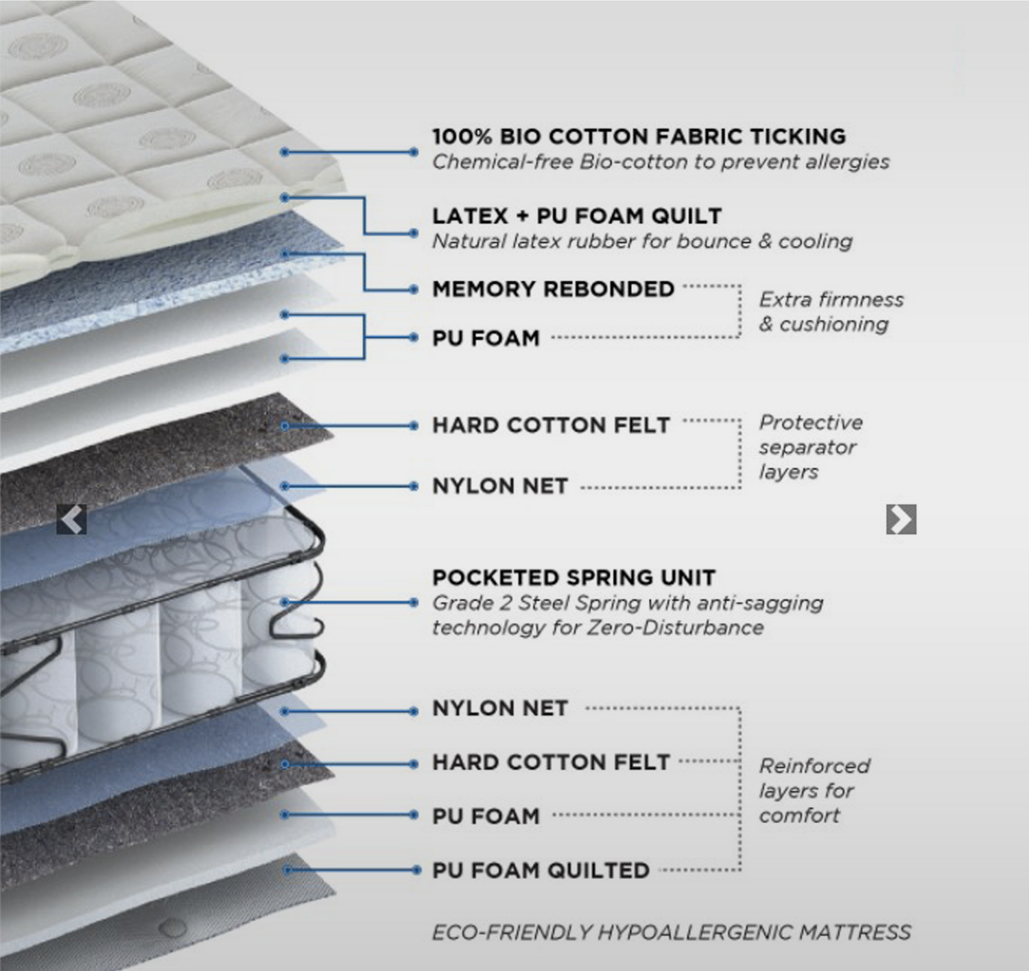 In our quest to provide you with a great nights sleep, we’ve sourced and incorporated the finest materials into our mattresses. From bamboo to Aloe Vera, and Copper to Visco Gel, you’ll find the right mattress for your rest requirements.
